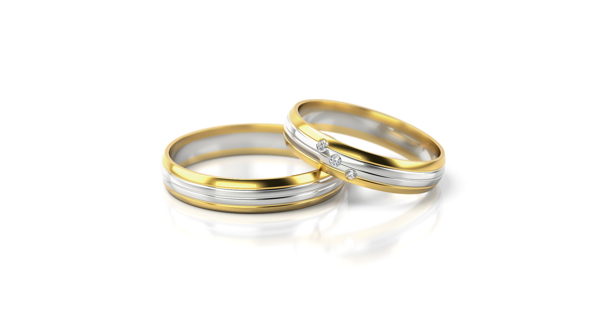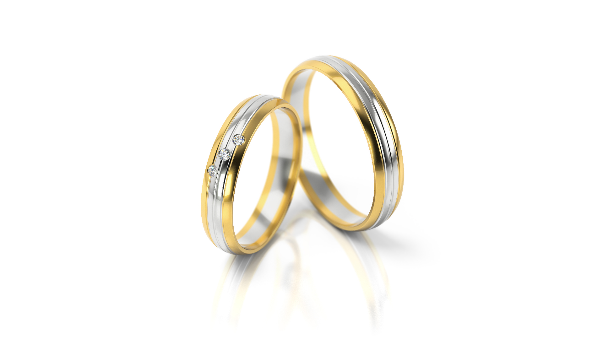 Kombinace žlutého a bílého zlata se třemi zirkony. Pánský prsten může být vyroben bez zirkonů. Také můžeme vložit brilianty.